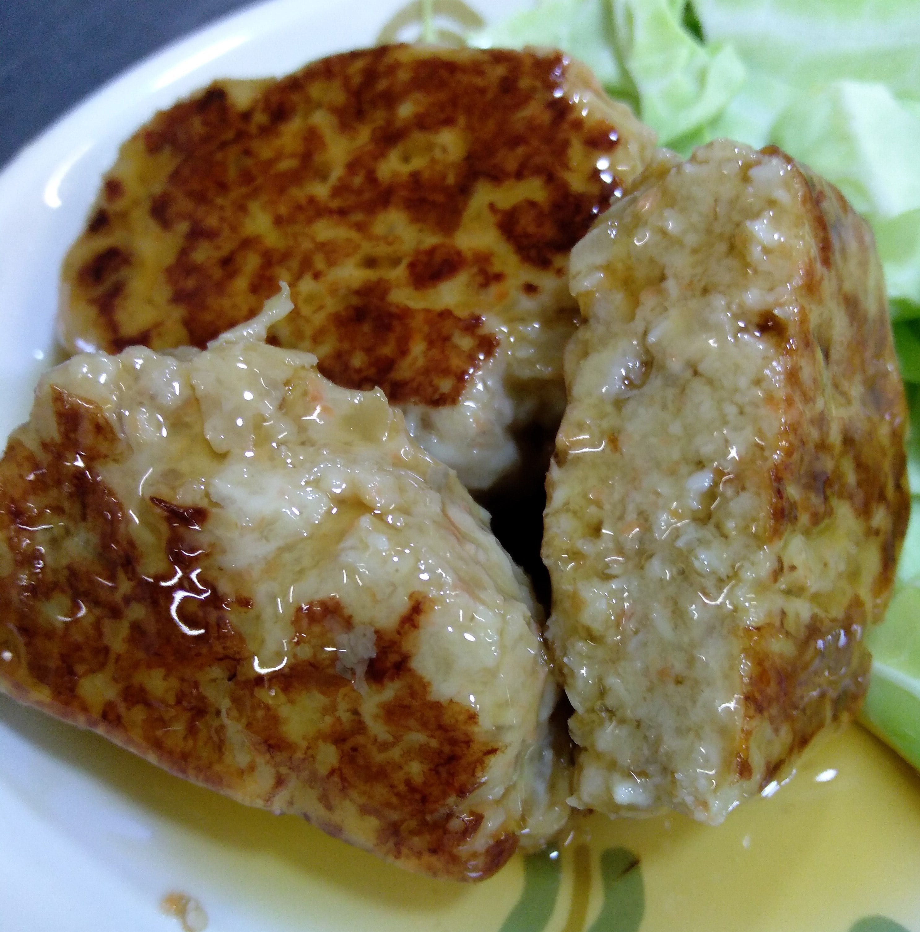 たっぷり野菜の入ったミニハンバーグが出来ました。ごぼうをピューレして炒めた玉ねぎと鶏ミンチでハンバーグにしています。根菜類で普段の足りない栄養素を手軽に摂取。第2弾はこんぶでお出汁をとった和風ソースに絡めています。ごぼうはペースト状にしていますので、消化は問題ないものと思います。(狭窄のある方はご注意下さい)